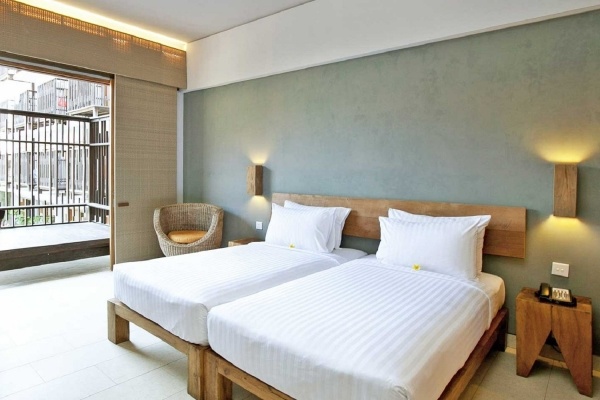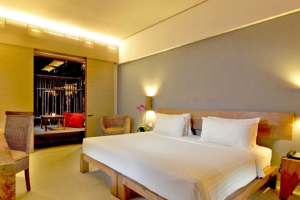 Szoba (deluxe) felszereltsége: Kb. 32 m2 alapterületű indonéz stílusban berendezett szoba felszereltségéhez tartozik a légkondicionáló, TV, telefon, minibár (térítés ell.), széf, fürdőszoba zuhanyzóval, hajszárító, piperecikkek, tea/kávékészítési lehetőség, wifi, medencére néző balkon.