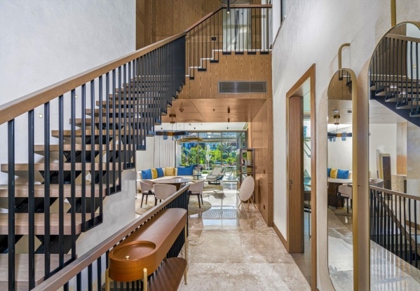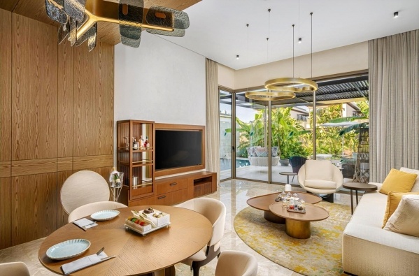 - Villák - 3 hálószoba, háromszintesek, a földszinten nappali konyhával, hálószoba fürdőszobával, terasz és közvetlen kijárat az optikailag elválasztott közös medencéhez, az emeleten 2 hálószoba, 2 fürdőszoba és gardrób, az alagsorban fitneszterem (edző térítés ellenében), törökfürdő (kezelések térítés ellenében), masszázsszalon (masszázs térítés ellenében), szauna és biliárdasztal, ingyenes concierge-szervíz, összesen kb. 693 m2