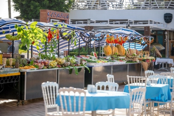 |Speciális all inclusive ellátás. Ezen kívül reggeli, ebéd és vacsora külön is foglalható. A fő étkezések mellett snackeket is kínálnak. A vendégek italfogyasztása az árban benne foglaltatik.