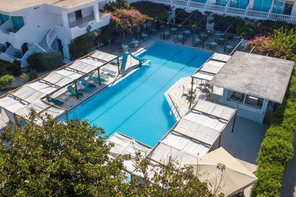 A 2023/24-ben felújított, modern szálloda a gyönyörű strand közelében fekszik. A vendégeket a szépen gondozott kertben modern főépület, több medence (az egyik kis aquaparkkal) és saját medencével rendelkező szobák is várják. Kolymbia központja kb. 400 m-re fekszik, ahol üzletek, tavernák és bárok találhatók. Az Eukaliptusz sugárút kb. 300 m-re, Rodosz főváros kb. 23 km-re és Faliraki központjától kb. 12 km-re helyezkedik el.