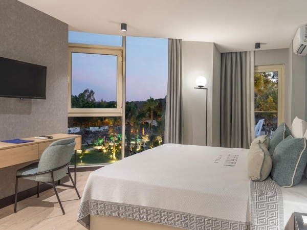 SZOLGÁLTATÁSOK: medencék napernyőkkel és napágyakkal o beltéri medence o főétterem o bárok (lobby, medence, tengerpart...) o cukrászda o napi és esti animációs programok o esti show o élő zene o fitneszterem o darts o boccia o jóga o vízi torna o strandröplabda o pilates o asztalitenisz o török fürdő o szauna o wifi o térítés ellenében: SPA központ o masszázsok o török fürdő kezelések o kozmetikai és testkezelések o fodrászat o üzletek o orvosi szolgálat o mosoda o vízi sportok a tengerparton