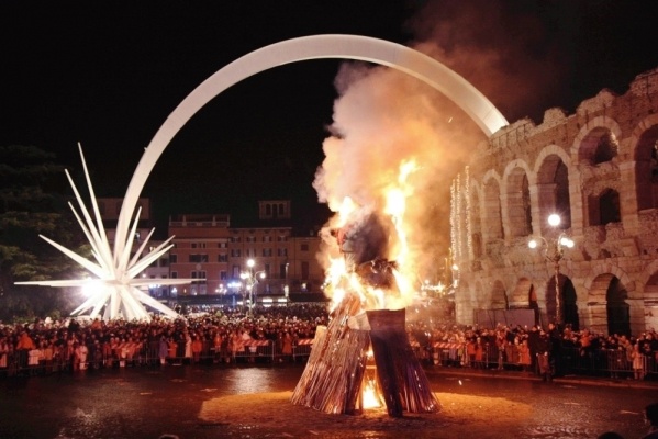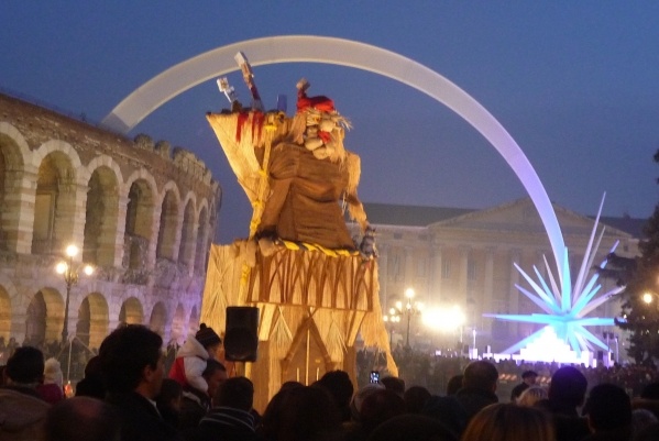 Reggeli után városnézés Itália legromantikusabb, és még mindig lenyűgöző karácsonyi díszbe öltözött városában.Még egy rövid séta erejéig megállunk Marostica sakktábla teréről híres, festői, ódon városkában, ahol minden évben megelevenednek a sakkfigurák, a középkori város lakóinak jóvoltából. Verona az UNESCO világörökség része, a II. világháborúban Mussolini egyik központja volt. A belvárost a Corso Porta Nuova-n keresztül érjük el, és rögtön a még mindig karácsonyi díszbe öltözött Piazza Bra és az Arena előtt találjuk magunkat. Megnézzük a napjainkban méltán híres opera- és színházi előadásairól nevezetes, fényekkel kivilágított ókori Arénát is. Rómeó és Júliát kikerülni akkor sem lehetne, ha akarnánk. Ellátogatunk Júlia házához. A levelek Júliának című film hűen visszaadja a különleges hangulatot, mely a várost övezi. Megnézzük a régi kastély néven ismert Castelvecchiot, a város hangulatos folyóját átszelő ódon Pietra hidat, a lenyűgöző San Lorenzo templomot, a Dómot és Dante szobrát. Sétálunk a város terein és utcácskáin, melyeken az olasz ajándékozás ünnepnapján már "jóságos boszorkányok" is előtűnhetnek. A város főtere már az esti hangulatos " boszorkányégetésre" készül. Napközben szabadidő, bevásárlási lehetőség a jó minőségű olasz termékekből a karácsony után is hangulatos boltok kavalkádjában, ahol már kezdetét veszi a nagy, tél végi boszorkányos leárazás.