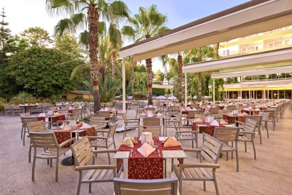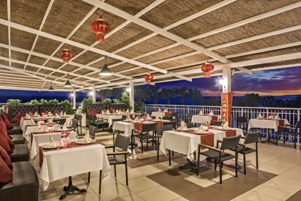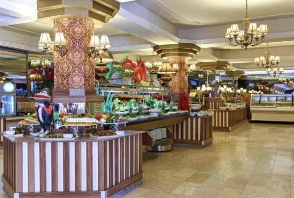 - All Inclusive: minden étkezés büférendszerben, reggelinél üdítők, tea és kávé, ebédnél és vacsoránál üdítők és egyes alkoholos italok, reggeli későn kelőknek 10:00 és 11:00 óra között, éjjel snack-ételek, tematikus éttermek 19:00 és 21:30 óra között (oszmán, olasz, japán, kínai, nyitva a hét egyes napjain, előzetes foglalás szükséges, tartózkodásonként 1x ingyenesen), vitaminbár 09:00 és 23:00 óra között, napközben snack-ételek, helyi alkoholos és alkoholmentes italok a lobby-bárban 08:00 és 01:00 óra között, a pool-bárban 10:00 és 24:00 óra között, a Garden bárban 15:00 és 24:00 óra között, a strandbárban 10:00 és 04:00 óra között. Az All Inclusive szállodák szolgáltatásai bizonyos részletekben szállodánként eltérhetnek.