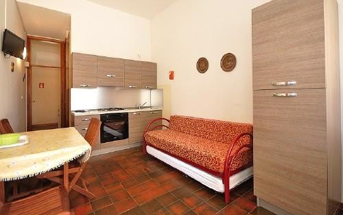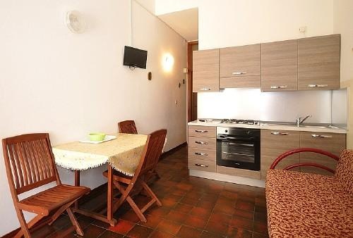 A+ típus - 3 fős egylégterű - légkondícionált, nappali konyhasarokkal kétszemélyes díványággyal, egy összecsukható ággyal, fürdőszoba zuhanyzóval és WC-vel, erkély.