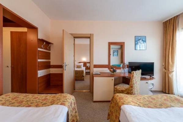 - 2 ágyas standard szobában, melyben légkondicionáló, tévé, telefon, minihűtő, zuhanyzós fürdőszoba hajszárítóval, kerti bútorokkal felszerelt balkon, WIFI csatlakozási lehetőség található. A pótágy kanapéágy vagy kinyitható fotelágy.