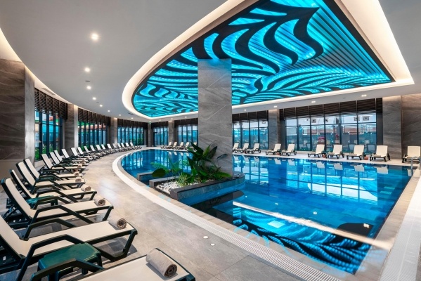 |A vendégek 2 beltéri- és 2 kültéri medencét használhatnak. A gyermekeknek pancsolómedence nyújt szórakozást. Rendelkezésre áll egy terasz, napernyők, és nyugágyak is. A tökéletes kikapcsolódásról a medencerészlegen található pezsgőfürdő gondoskodik. Egy medencebár, illetve egy snackbár is van. Azokat a vendégeket, akik a nyaralás ideje alatt sem szeretnének lemondani a sportolásról, boccia-val várják. A vízisportok kedvelőit vízi aerobikkal várják. A vendégeket a létesítményben színes beltéri sportkínálat várja, edzőteremmel, asztali tenisszel, biliárddal, darts-cal, jógával és gimnasztikával. A szállás wellnessrészlegének szolgáltatásai: gyógyfürdő, szauna és törökfürdő, valamint felár ellenében rendelkezésre áll egy szépségszalon, masszázs kezelések és ayurvedikus kezelés. A szabadidős kínálatban szerepelnek továbbá: az élő zene, egy diszkó, egy miniklub és egy minidiszkó. Copyright GIATA 2004 - 2026. Multilingual, powered by www.giata.com for client no. 703822