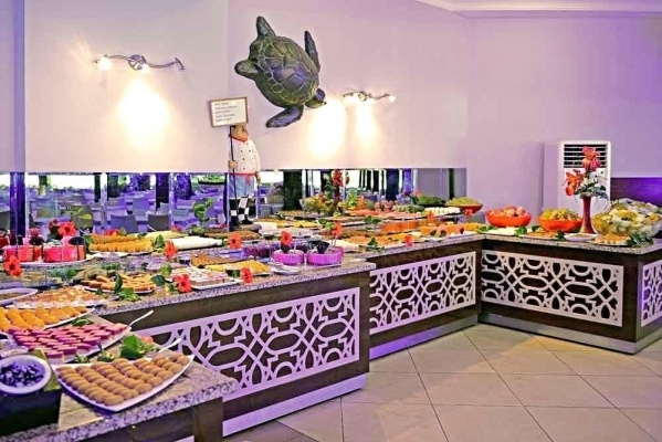 - All Inclusive: minden étkezés büférendszerben, kávé, tea és palackozott üdítők reggelinél, helyi, palackozott üdítők, sör, bor és egyes alkoholos italok ebédnél és vacsoránál, reggeli későn kelőknek, éjféli leves 23:30 és 00:30 óra között, a pool-bárban helyi alkoholos és alkoholmentes italok 10.00 és 23.00 óra között, a teraszos bárban 15:00 és 18:00 óra között kávé, tea és kekszek, a strandbárban 10:00 és 18:00 óra között üdítők, forró italok és sör, előre meghatározott napokon 10:00-15:00 óra között gözleme, valamint 11:00 és 16:00 óra között pizza, 12:30 és 16:00 óra között könnyű snack-ételek, 16:00 és 17:00 óra között fagylalt. Az All Inclusive szállodák szolgáltatásai bizonyos részletekben szállodánként eltérhetnek.