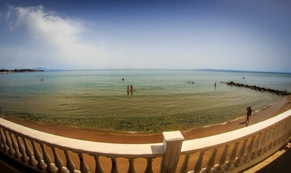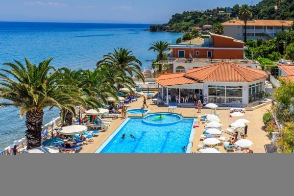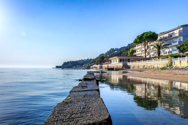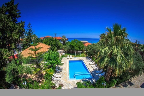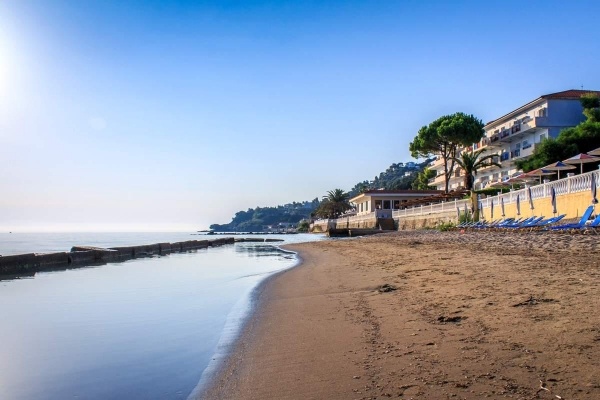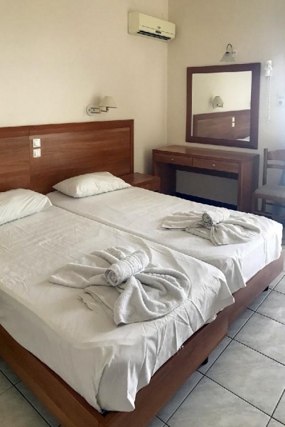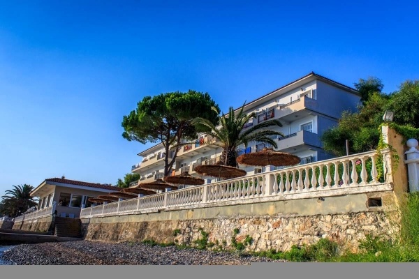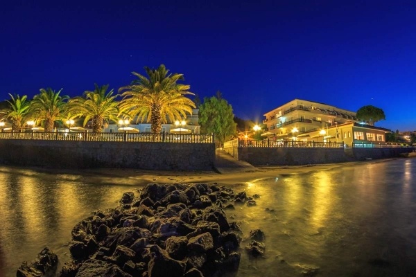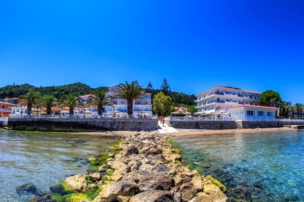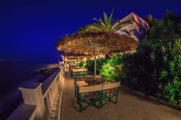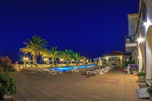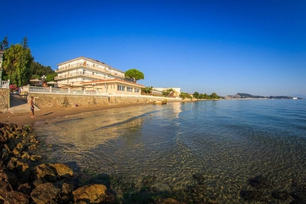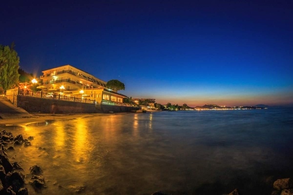 Közvetlenül a keskeny homokos, helyenként apró kavicsos tengerparton, a városközponttól sétatávolságnyira (500m), a főutca mentén, hangulatos éttermek, tavernák közelében épült, népszerű, barátságos személyzettel rendelkező strand hotel.
