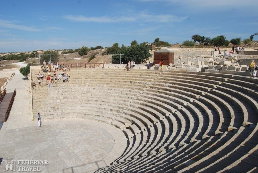 Egész napos kirándulás Limassoltól nyugatra. Először a több mint 3000 éves ókori város, Kurion maradványait látogatjuk meg, mely Ciprus leglátványosabb ókori emléke (gyönyörű fekvésű színház). Útban Paphos felé pihenő annál a romantikus hangulatú partszakasznál, ahol a legenda szerint Aphrodité, a szépség és szerelem istennője kikelt a habokból.Városnézés Paphos-ban (UNESCO világörökség): királysírok a Krisztus előtti III. századból, Szt. Pál oszlop, ásatási terület a világhírű mozaikokkal. Szabadidő a régi kikötőben, lehetőség a kikötői erőd meglátogatására.Visszaútban Limassolba megnézzük Yeroskipou-ban az ötkupolás, ezeréves Ayia Paraskevi-templomot (gyönyörű freskók).