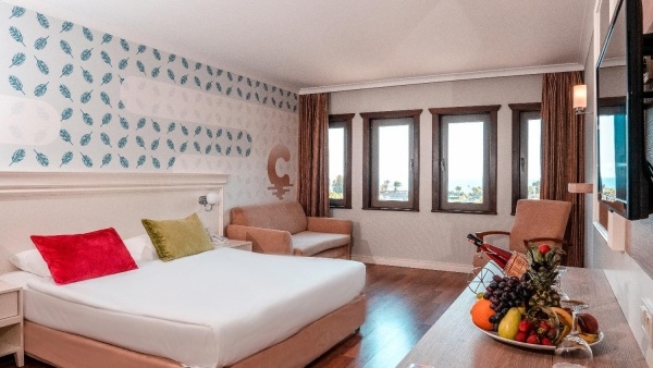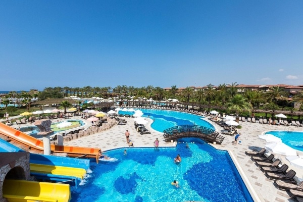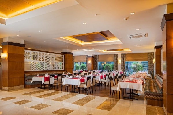- All Inclusive: minden étkezés büférendszerben, éjféli snack-ételek 23:30 és 00:30 óra között, kávé, tea és palackozott üdítők reggelinél, üdítők, sör, bor és egyes helyi alkoholos italok ebédnél és vacsoránál, gyermekbüfé, gyermeksarok, helyi alkoholos és alkoholmentes italok a lobby-bárban, a Palmiye bárban és a pool-bárban 10:00 és 24:00 óra között, a strandbárban 10:00 és 18:00 óra között, a Sky-bárban 19:00 és 24:00 óra között, snack-ételek a pool-bárban és a strandbárban 12:00 és 15:00 óra között, gözleme 12:00 és 15:00 óra között, kávé és kekszek 16:00 és 17:00 óra között, vacsorázni tartózkodásonként 1x a hal és olasz a'la carte-étteremben is lehetséges 19:00 és 21:30 óra között (előzetes foglalás szükséges). Az All Inclusive szállodák szolgáltatásai bizonyos részletekben szállodánként eltérhetnek.