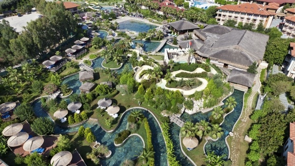 A 2011-ben teljeskörűen felújított, európai vendégek körében kedvelt, családbarát, 22 blokkból álló komplexum 60 km-re fekszik az antalyai repülőtértől kb. 10 km-re Side központjától, közvetlenül a homokos, lassan mélyülő tengerpart mentén. A 73.000 nm-en elterülő, fantasztikus üdülőkomplexum számtalan szórakozási lehetőséggel várja a kicsiket és nagyokat egyaránt. A hatalmas, gyönyörű kertben elterülő Amazon vízipark biztosítja a vizes élmények sokaságát csúszdákkal, lusta folyóval, őrült folyóval, hullámmedencével vagy éppen felfedezhetjük a barlangi medencét is. A szálloda nemcsak a szórakozásra, de a minőségi étkezésre is nagy hangsúlyt fektet: húskészítményeik, tejtermékeik; valamint zöldség- és gyümölcs kínálatuk is mind saját termelésű. Itt minden adott a felhőtlen kikapcsolódáshoz! Nyúljon el a medenceparton, élvezze a frissítő habokat vagy fedezze fel a helyi specialitásokat. A szálloda néhány szolgáltatását testvárszállodájával, a szomszédos Club Grand Aqua hotellel biztosítja.