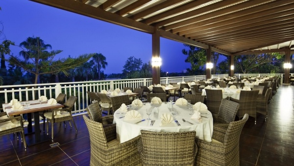 - All Inclusive Plus: Reggeli, ebéd és vacsora büférendszerben, késői reggeli, napközbeni snackek, éjszakai snackek (00:15-01:15), gözleme, palacsinta, fagylalt és jégkrém meghatározott időpontban, kávé/tea és sütemények, török kávé, helyi és néhány import alkoholos és alkoholmentes italok (10:00-02:00), naponta üdítőkkel és vízzel feltöltött minibár, 4 a'la carte étterem (2 olasz, tenger gyümölcsei, török, a tartózkodás során 1 alkalommal, előzetes asztalfoglalással)