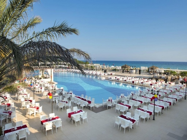 ELHELYEZKEDÉS: Kizilagac o Manavgat 13 km o Side 15 km o Antalya repülőtér 75 km o 99.000 m?-es területen fekszik o a közeli városok könnyen elérhetők helyi busszal (dolmus) vagy taxival o a hotel akadálymentesített