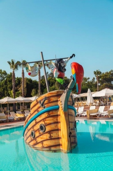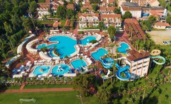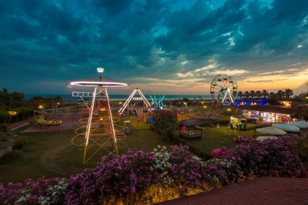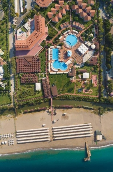 A kiváló minőségű, 1993-ben épült és utoljára 2019/2020-ban részlegesen felújított családbarát üdülőkomplexum, az antalyia repülőtértől 75 km-re, Side központjától 15 km fekszik. A főépületből és számos club épületből álló komplexum mintegy 132.000 nm-en, közvetlenül a homokos-kavicsos tengerpart mentén helyezkedik el, ahol aquapark, vidámpark, kis állatkert és számtalan szolgáltatás várja a kicsiket és nagyokat egyaránt, hogy igazán élményekkel teli és felejthetetlen legyen a nyaralása!