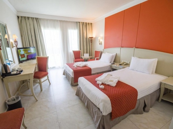 SZOLGÁLTATÁSOK: medencék napernyőkkel és napágyakkal o csúszdák o animációs programok o élőzene o főétterem o bárok (lobby, medence, strand) o diszkó o fitneszterem o teniszpálya o futballpálya o strandröplabda o térítés ellenében: SPA központ o szauna o jakuzzi o beltéri medence o törökfürdő o masszázs o orvosi szolgálat o játékterem o biliárd o asztalitenisz o sakk