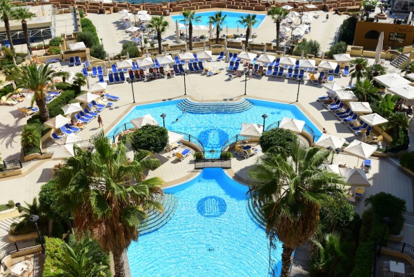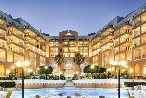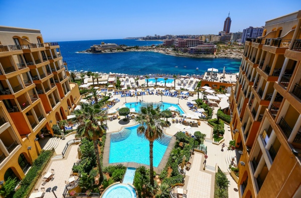 Fekvése: a kiemelkedően magas kategóriájú, kettőszázötven szobás, St. George's Bay Resort a Corinthia hotellánc egyik büszkesége, St. Julianstól nem messze, közvetlenül a sziklás strandon, a kedvelt Szent György-öbölben fekszik, gyönyörű kilátással a tengerre és Észak-Máltára. Paceville, Málta egyik legnagyobb mulató- és szórakozónegyede, sétatávolságnyira található. A szálloda közelében (kb. 400 m) található buszmegállóból egyénileg is megközelíthetjük a sziget bármely pontját.