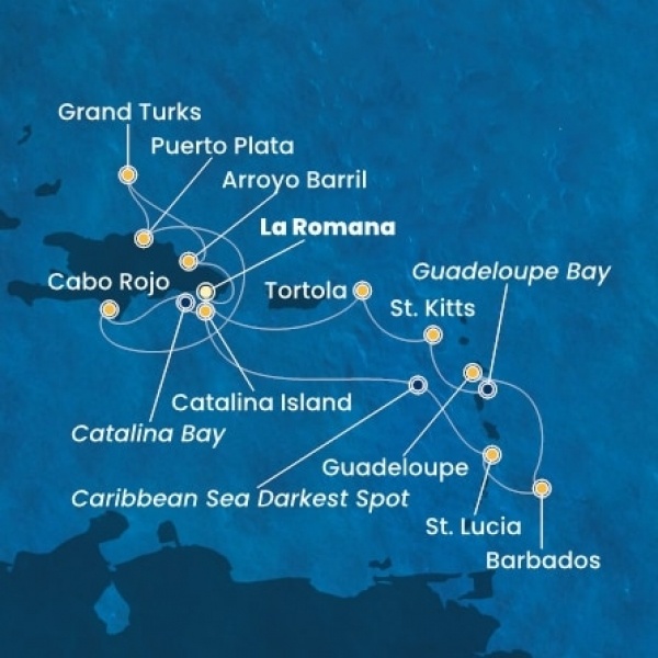 | 2. nap | Catalina Island (Dominikai Köztársaság) | 08:00 | 18:00 |