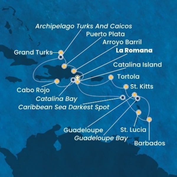 | 2. nap | Catalina Island (Dominikai Köztársaság) | 08:00 | 18:00 |