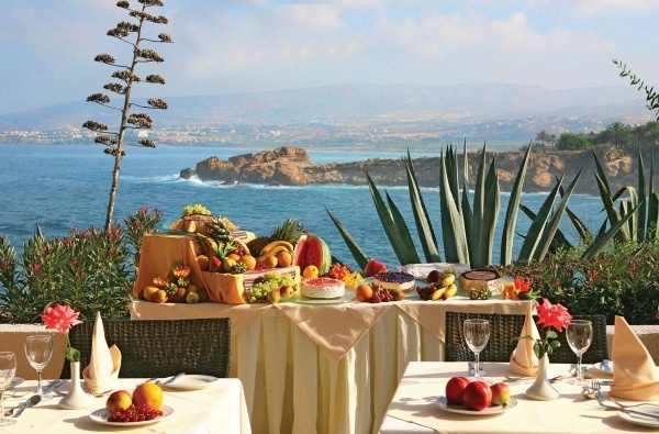 Étkezés: Félpanzió. A félpanziós ellátás reggelit és vacsorát foglal magában, mindkettő büféasztalos formában. A reggelinél hideg és meleg ételek, friss péksütemények, gyümölcsök és italok közül választhatnak a vendégek. A vacsoránál nemzetközi és helyi ciprusi fogások, saláták és desszertek állnak rendelkezésre, tematikus estekkel kiegészítve. Felár ellenében all inclusive ellátás is foglalható, benne: reggeli, ebéd és vacsora, snack ételek és szendvicsek napközben, helyi jégkrémek, korlátlan italfogyasztás 10-23 óra között: megjelölt röviditalok, koktélok, sörök, borok, gyümölcslé, szénsavas üdítőitalok, ásványvíz, gyermekkoktélok, kávé, tea (kivéve palackozott és import italok).