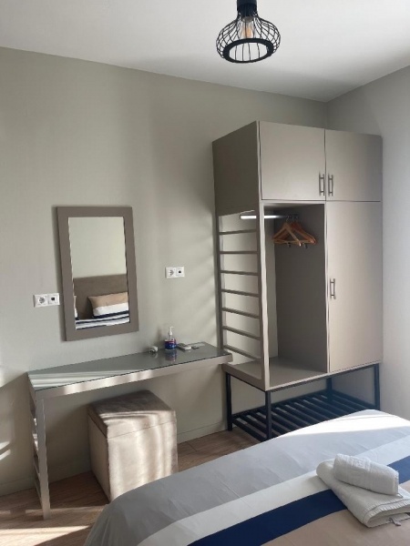 A 2 szintes apartmanházban földszinti és emeleti, különböző színvonalú, 2-3 fős stúdiókban. A stúdiók frissen festve, új bútorokkal, kényelmes ágyakkal (új matracokkal) várják kedves utasainkat. A lakóegységek mindegyike saját fürdőszobával, konyhasarokkal (vízforraló, mikrohullámú sütő, villany/indukciós főzőlap), balkonnal/terasszal rendelkezik. Légkondicionálás felár ellenében kérhető, WiFi minden stúdióban ingyenes. A tengerre néző stúdiókból csodálatos panoráma nyílik a Jón-tengerre. Economy: a 4 db egyszerűen berendezett, kisebb alapterületű, franciaágyas (140x190 cm) stúdió a földszinten és az emeleten található, az egyes szinteken nem egymás mellett helyezkednek el. Az emeleti stúdiók oldalról tengerre nézőek (felár ellenében). Standard: 5 db földszinti (pótágyazható), és felár ellenében 5 db tengerre néző emeleti stúdió (csak gyermek részére pótágyazható). Széf felár ellenében kérhető. Superior: szintenként 1-1 felújított stúdió, nagyobb méretű fürdőszoba zuhanykabinnal, minimál stílusú, modern berendezés. Széf felár ellenében.