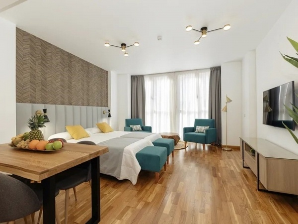 Stúdió 2-fős szoba: kb. 38 m2, légkondicionált, fürdőszoba (kád vagy zuhanyzó, wc, hajszárító, kozmetikai készlet), konyhasarok, vezeték nélküli internet, tévé, kávé/tea készlet.