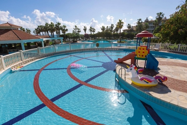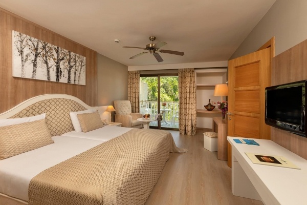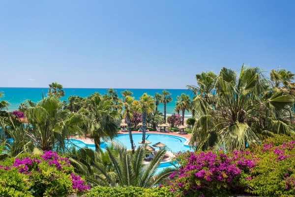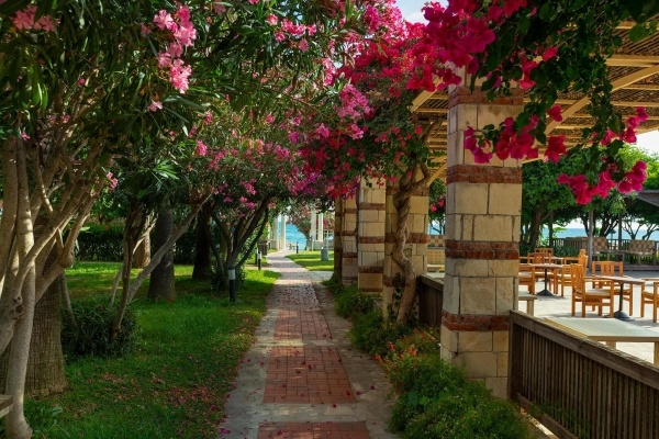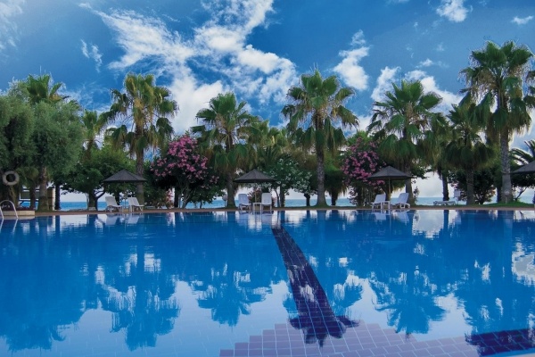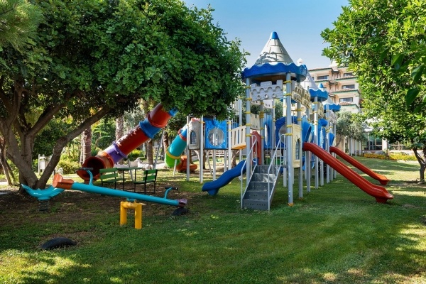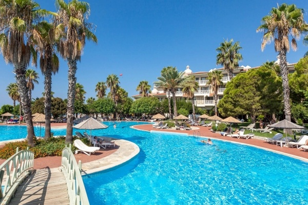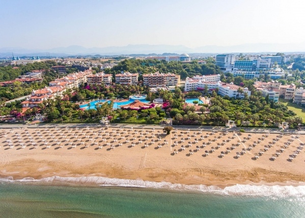 A szálloda közvetlenül a gyönyörű, széles homokos strandon fekszik, Side óvárosától kb. 3 km-re, amely kényelmesen elérhető a parti sétányon keresztül. A közelben számos étterem és üzlet található, valmint buszmegálló a szálloda előtt. A három- és négyemeletes épületekből álló létesítményt egy dús növényzetű kert veszi körül. Kitűnő választás egy családi nyaraláshoz.
