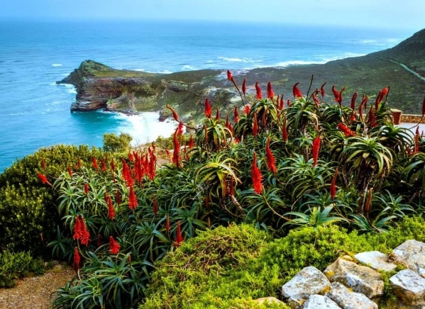 Továbbutazás a Jóreménység Nemzeti Parkba, amennyiben az időjárás kedvező, a Chapman's Peak sziklába vájt, kanyargós festői viadukt úton. A Jóreménység Foka Nemzeti Park bejáratát elhagyva, ameddig a szem ellát, próteacserje borítja a kb. 8000 hektáros szavannás vidéket, amelyet az Indiai-óceán és az Atlanti-óceán sziklás partszakasza határol. Állatvilágában megtalálhatók: páviánok, zebrák, antilopfajták, fokföldi fókák, több mint 160 fajta madár, mint pl.: strucc, fekete sas, albatrosz, kormoránok. Jóreménység Foka táblánál megállunk egy rövid fotószünetre, majd siklóval felmegyünk a világítótorony lábáig. Innen láthatjuk az Indiai-óceán és Atlanti-óceán festőien szép találkozását.
