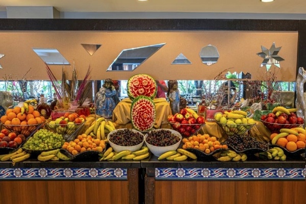 ELLÁTÁS: all inclusive o 10:00-23:00 o reggeli, ebéd és vacsora büfé formájában o késői reggeli o diétás menü o snackek o kávé, tea és sütemények o helyi alkoholos és alkoholmentes italok o minibár o felár ellenében: import és prémium alkoholos és alkoholmentes italok o palackozott italok o strandbár
