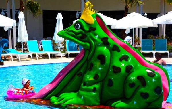 - Medence napernyőkkel és napozóágyakkal, gyermekmedence, medence 6 csúszdával, főétterem, 2 a'la carte étterem, 2 snack étterem, cukrászda, 8 bár, nappali és esti animációs programok, alkalmanként élő zene, diszkó, miniklub (4-12 éves korig), minidiszkó, játszótér, fitneszterem, törökfürdő, szauna, gőzfürdő, asztalitenisz, darts, boccia, aerobik, vízi aerobik, zumba, medencejátékok, strandröplabda, WIFI a szobákban és a szálloda közösségi helységeiben. A hotel saját strandján a napernyők és a napozóágyak ingyenesen, a strandtörölközők letét ellenében vehetők igénybe.