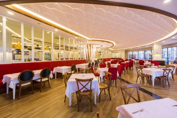 - Ultra All inclusive: reggeli, ebéd és vacsora büférendszerben, kései reggeli, éjszakai snack (22:00-07:00 között), éjféli leves, délutáni kávé/tea/sütemények, fagylalt (bizonyos időpontban), számos helyi és néhány import alkoholos és alkoholmentes ital (napi 24 órában), koktélok, naponta üdítők és víz a minibárból, 2 a'la carte étterem (török és mediterrán; előzetes foglalással).