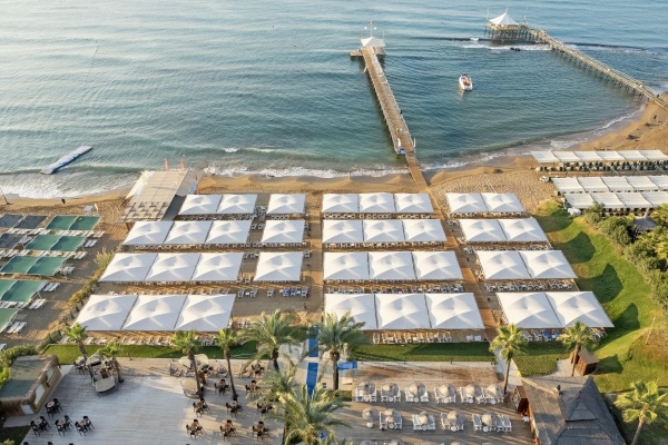 A családbarát szálloda közvetlenül a lassan mélyülő, homokos tengerparton fekszik, Side központjától kb. 13 km-re, ahova menetrend szerinti buszokkal is el lehet jutni. Ultra All Inclusive ellátás, medence vízi játékokkal, több étterem és wellness-részleg is várja a vendégeket.