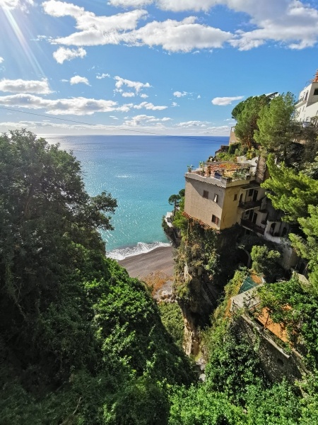 Positano, a "Függőleges Város" két hegy közé épült be, pasztellszínű házai, mint egy szőlőfürt kapaszkodnak egymásba, a látvány valóban meseszép. A legvonzóbb attrakciója a képeslapra illő táj, és sokan kimondottan a fotózás miatt érkeznek egynapos kirándulásra. Positano már az ókori Róma idején is fontos város volt. Majd évszázadokkal később a 16. századtól élte virágkorát, és gazdag barokk házak épültek terasszal a tengerre. Positanóban számos templom található, az egyik legrégibb a Chiesa di S. Maria Assunta, amely Positano legfontosabb vallási épülete. Az 1200 körül épült templom díszes majolika kupolával rendelkezik, és egy ősi bizánci mozaik maradvány található az apszisában. A XII. századi bizánci oltárkép egy fekete Madonnát ábrázol a gyermekével.