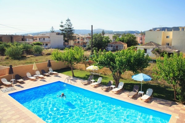 Rethymno homokos, néhol kavicsos tengerpartjától csupán kb. 50 méterre helyezkedik el. Közvetlenül az épülete előtt kisebb játszótér található. Retyhmno óvárosa kb 3 km-re található. Közelében éttermek, üzletek is vannak.