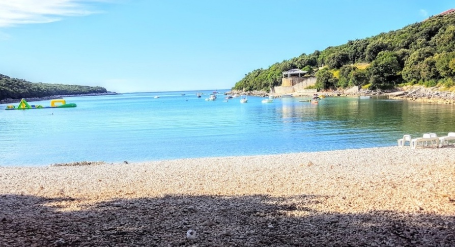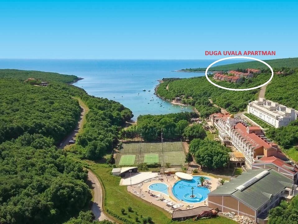 Pulától kb. 25 km-re, Duga Uvala nevű öbölben, kb 300-400 m-re a kavicsos, lassan mélyülő és sziklás strandtól, domboldalon, zöld környezetben találhatóak apartmanok, néhány, 3 szintes apartmanházban. A sziklás strand hosszú és tagolt. Az apartmanok mozgáskorlátozottoknak nem ajánlatott, mert a strand lépcsőkön keresztül közelíthető meg és az épületekben sincs lift.