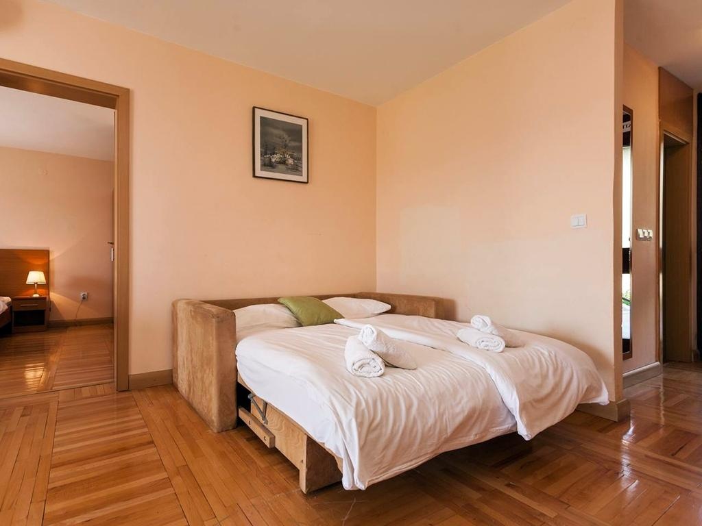 A2 Tipus (2+3 ágyas): 50 nm (kétágyas hálószoba / franciaágy, nappali kihúzható kanapéval 2 fő részére, kihúzható fotelágy 1 fő részére, konyhasarok, mikró, vízforraló, klíma, ingyenes WiFi, TV, fürdőszoba, erkély).