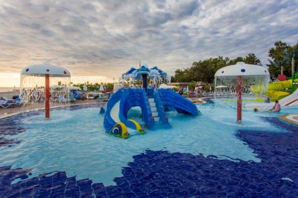A 2006-ban épült szállodakomplexum Antalya repülőterétől 100 km-re, Alanya központjától 18 km-re fekszik, a homokos, aprókavicsos tengerparttól - melyet egy aluljárón keresztül közelíthetünk meg - pedig csak a parti út választja el. A szálloda mintegy 37.700 m2-en terül el, számos szolgáltatással, csúszdák és vizes élmények végtelenjével, kiváló animációs programokkal várja a kicsiket és nagyokat egyaránt, hogy igazán felejthetetlen nyaralásban legyen részük. A szolgáltatások egy része az Eftalia Island részen (a tengerparti részen) vehető igénybe, a szállodalánc többi szállodájával közösen.