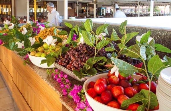 - All Inclusive: Reggeli, ebéd és vacsora büférendszerben, kávé/ tea és sütemények, fagylalt bizonyos időpontokban, helyi alkoholos és alkoholmentes italok (10:00-23:00), minibár érkezéskor vízzel feltöltve. Térítés ellenében: Import és üveges italok, koktélok, frissen facsart gyümölcslevek, török kávé, szemes kávé, fogyasztás a diszkóban (00:00-02:00), a'la carte étterem (előzetes asztalfoglalással), alkohol fogyasztás az Eftalia Island részen, minden egyéb fogyasztás 23:00 óra után.