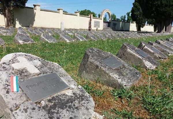 Közösen elénekeljünk őseink nótáját: "Kimegyek a doberdói harctérre, Feltekintek a csillagos nagy égre, Csillagos ég merre van a magyar hazám, Merre sirat engem az édesanyám." A kesergő katonadalt fújták dédapáink, akik szerencsésen visszatértek a festői szépségű Isonzó folyó mentén elterülő halálmezőről, amelynek hallatán - Doberdo - ma is elborzadunk. Redipugliaban az olasz katonai temetőt és monumentális hősi emlékművet keressük fel, majd Foglianoban az osztrák-magyar katonai temetőt. Felmegyünk a Doberdó-fennsík sziklái közé, hogy a Monte sei Busi-n kavernákhoz, az egykori frontvonal védelmi állásaihoz jussunk.