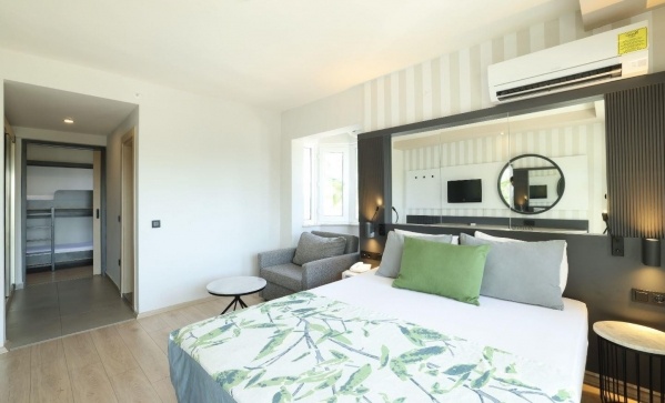 - oldalról tengerre néző szobák - tágasabbak, 2 kisebb hálószoba ajtóval elválasztva, az egyikben franciaágy, a másikban emeletes ágy