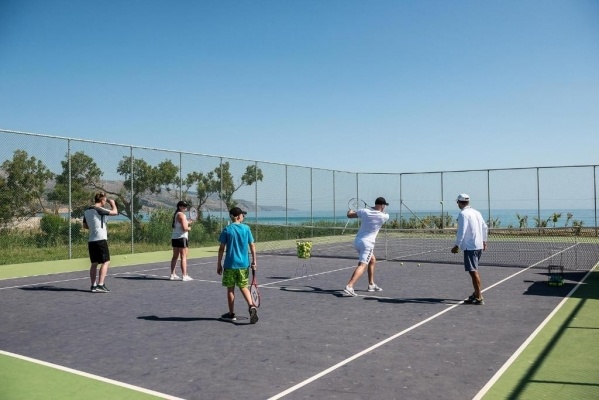 Luxusszálloda Kréta nyugati részén, Kolymbari-ban, közvetlenül a homokos/kavicsos strand mellett. Chania városa kb. 23 km-re, a menetrend szerinti buszmegállója kb. 200 m-re található.