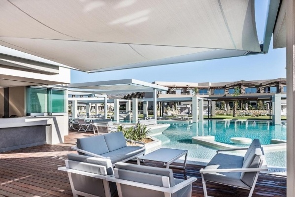 - családi-suitek - hálószoba és nappali tolóajtóval elválasztva, 2 fürdőszoba, külön közös medence, minibár (bekészítés tartózkodásonként 1x), 3 a'la carte-étterem (tartózkodásonklnt 1x), VIP reggeli a Kouzina étteremben