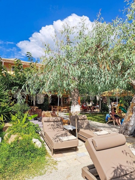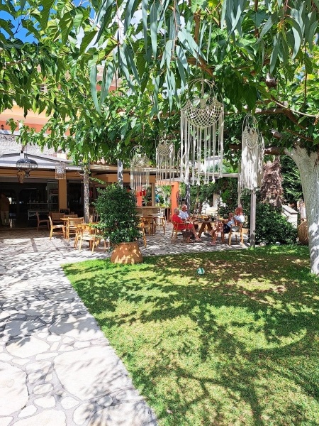 Az egyszerű szálloda közvetlenül a homokos/kavicsos tengerpart mellett fekszik, egy dús növényzetű kertben. A szálloda Nidri nyüzsgő üdülőhelyének egy csendesebb részén helyezkedik el.