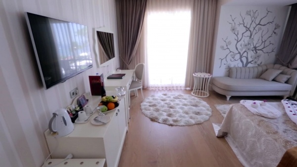 |A szobákat légkondicionáló berendezéssel, központi fűtéssel, konyhával és fürdőszobával szerelték fel. A legtöbb szobában erkély gondoskodik a kilátásról. A legtöbb szoba tengerre néző kilátást biztosít. A szőnyegpadlóval kialaktott szobák egy king size ággyal és egy kanapéval rendelkeznek. Kiságyat és pótágyat tudnak biztosítani. Ezen kívül van széf és minbár is. Az alapfelszereltséghez tartozik egy tea-/kávéfőző is. A nyaralás kényelmét szolgálja az internet-hozzáférés, a telefon, a TV-készülék és WiFi. Mozgáskorlátozottaknak kialakított szobák is foglalhatóak. A fürdőszobák felszereléséhez zuhanyzó és fürdőkád tartozik. Rendelkezésre áll továbbá egy hajszárító. Akadálymentesített fürdőszoba is foglalható. Családi szobát és nem dohányzó szobát is foglalható.