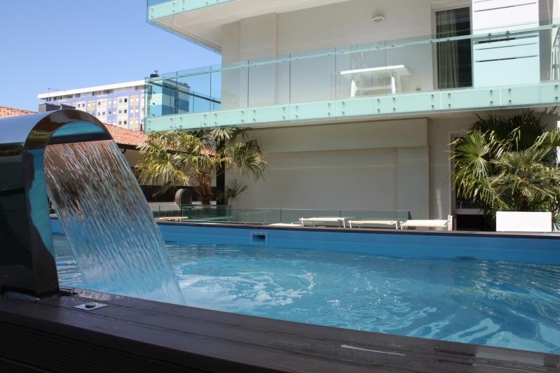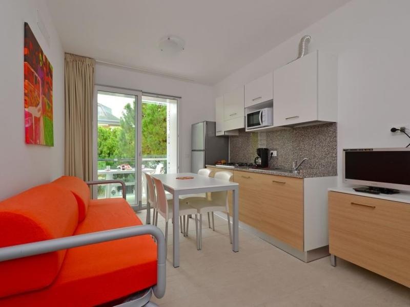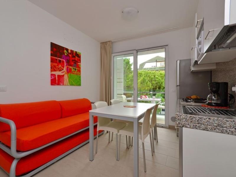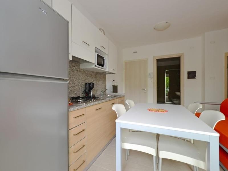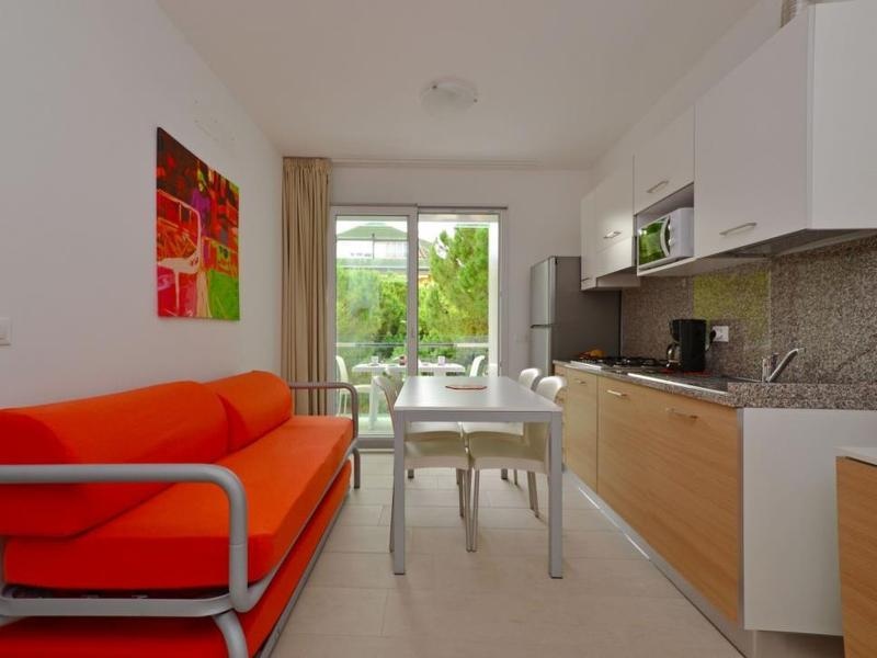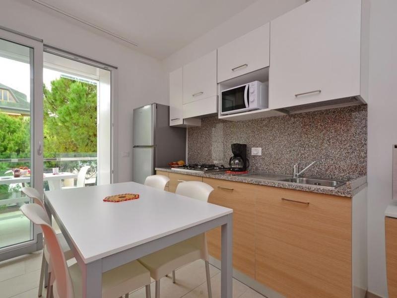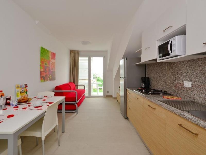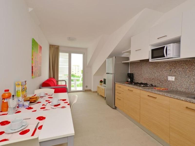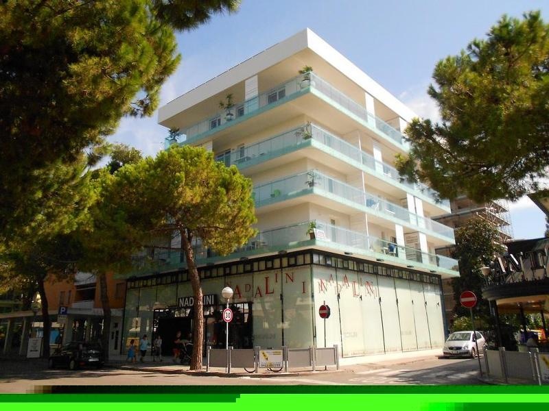 Az ötszintes apartmanház a központhoz közel található, Lignano Sabbiadoro részén, 150 méterre a homokos tengerparttól. A közelben üzletek, éttermek, pizzériák és bárok.