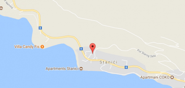 Omis óvárosától 4 km-re délre, Stanici településen, hegyoldalban, 150 m-re a lassan mélyülő, kavicsos és köves strandtól található. Strand lépcsőkön keresztül közelíthető meg.