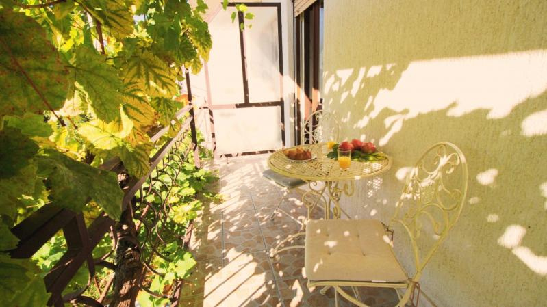 SE2 ágyas stúdió kb.25 nm 1. emeleti /1 db (nappali franciaággyal, konyhasarok, mikró, TV, klíma, fürdőszoba, tenger felőli erkély).