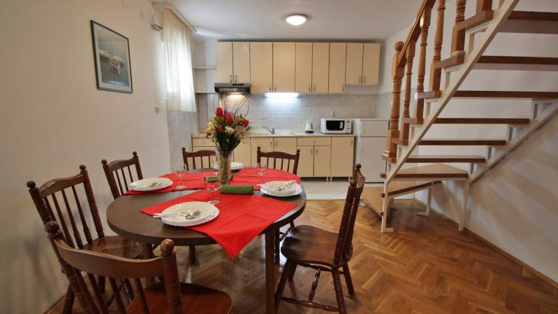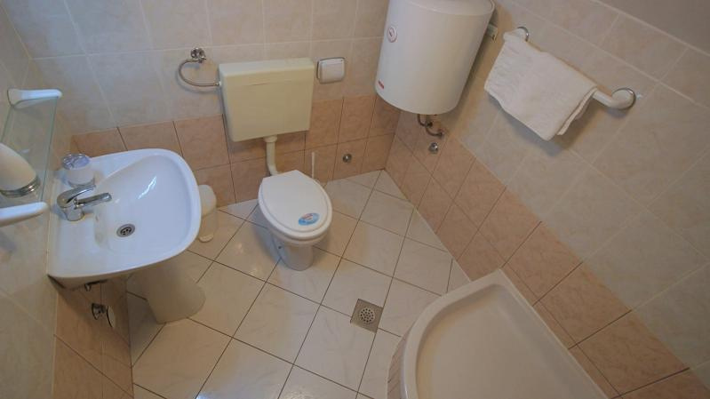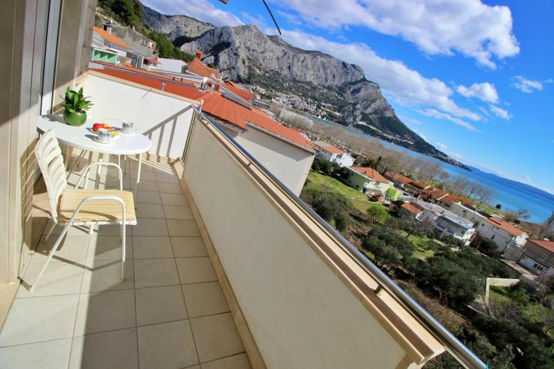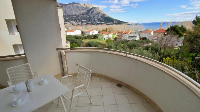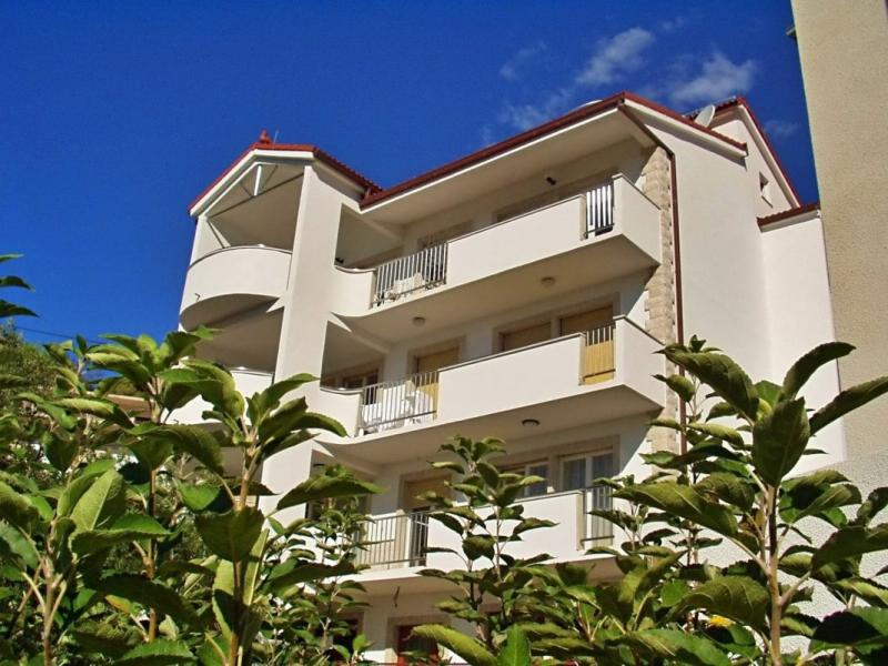 Fekvése: Omis és Duce határán, 400 m-re a lassan mélyülő, homokos strandtól, kisebb emelkedőn, a tengerparti út fölött található apartmanház. Omis óvárosa kb. 1000 m-re.