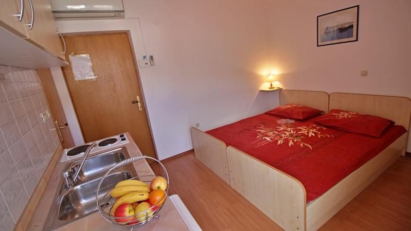 SN2 fős stúdió: kb. 25 nm/1 db 3. emeleti (nappali 2 ággyal és konyhasarokkal, fürdőszoba, klíma, direkt tenger felöli erkély).