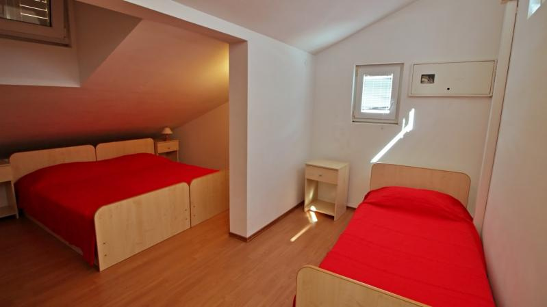 CE6+1 ágyas: 1 db kétszintes 3. emeleti (első szinten: kétágyas hálószoba (pótágyazható), nappali konyhasarokkal, fürdőszoba; második szinten: 1 db kétágyas és 1 db háromágyas hálószoba, fürdőszoba; TV, klíma, tenger felöli erkély).