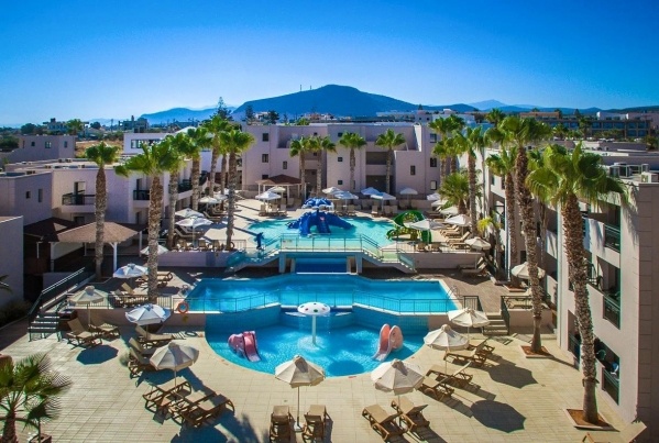 A szálloda közvetlenül Gouves központjában található. Elhelyezkedésének és felszereltségének köszönhetően az aktív pihenésre vágyó utasoknak kitűnő választás. A szálloda három aquaparkkal, csúszdákkal és vízi attrakciókkal várja a különböző korosztályokat. A létesítmény több különálló, elegáns görög stílusban épült épületből áll, és családias légkört kínál. A közelben találhatók a Skotino-barlangok, számos taverne és üzletek. A szállodát minden korosztály számára, de különösen a gyermekes családoknak ajánljuk.